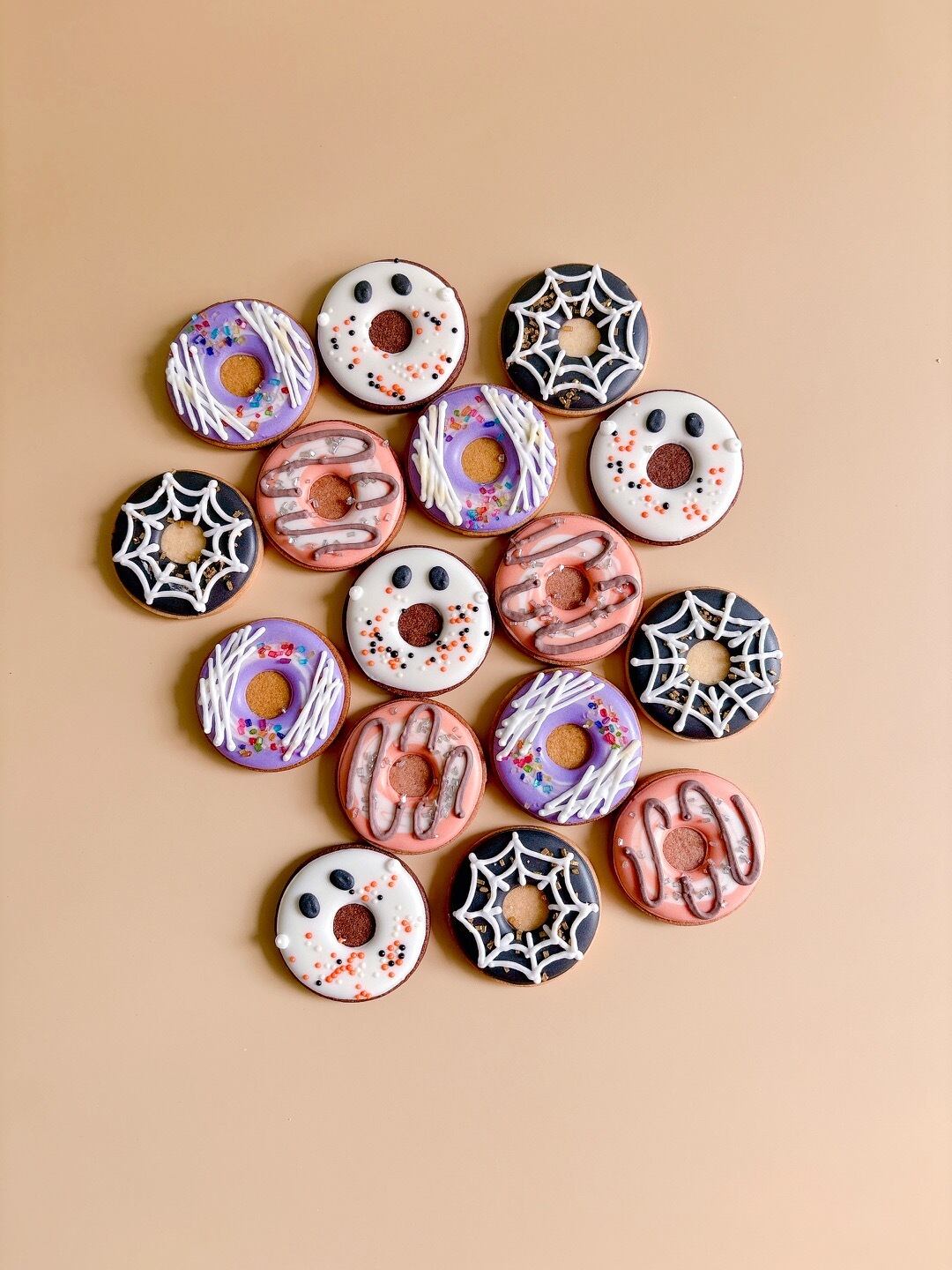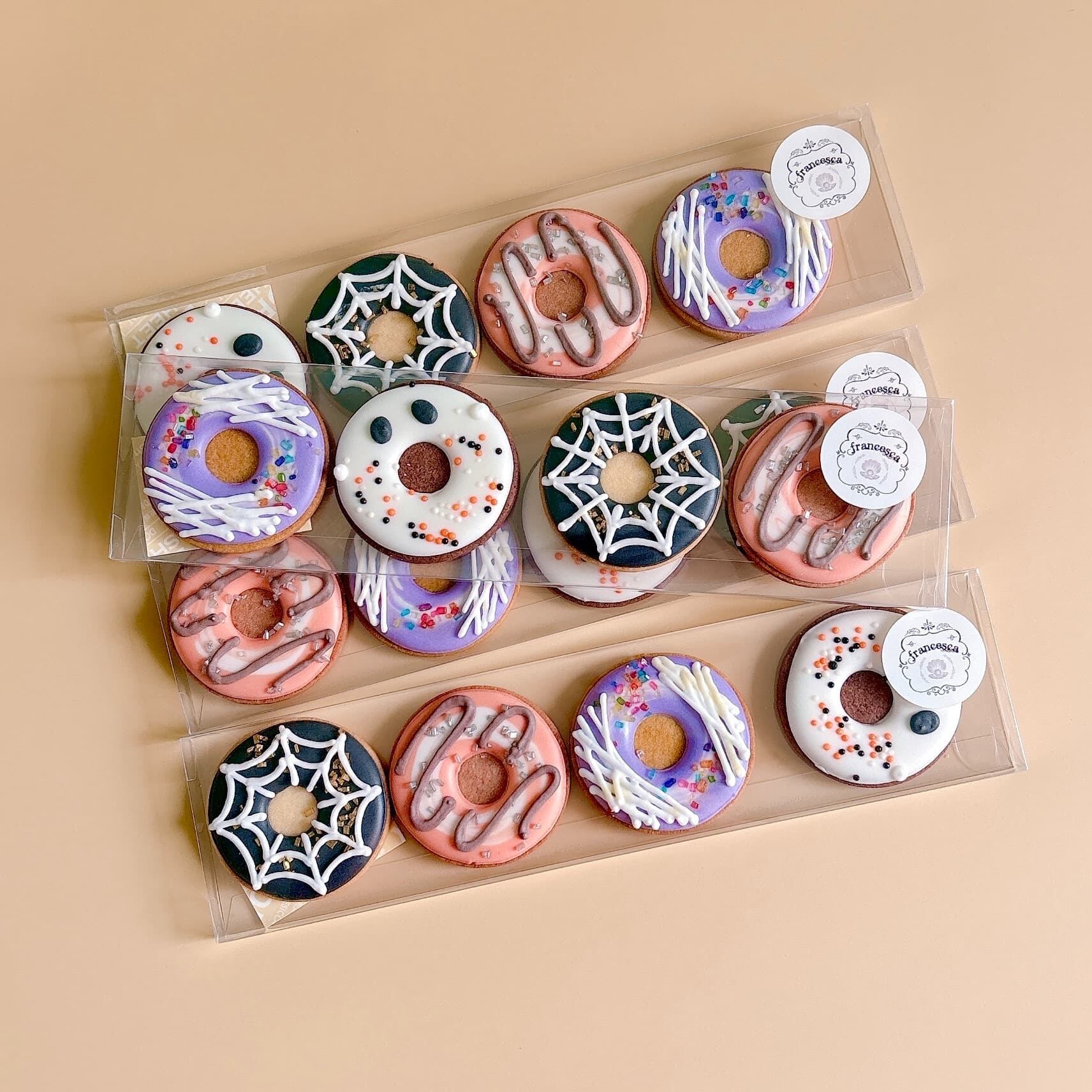 ハロウィンらしいカラーが可愛い、ミニサイズのドーナツに見立てたアイシングクッキーセット。