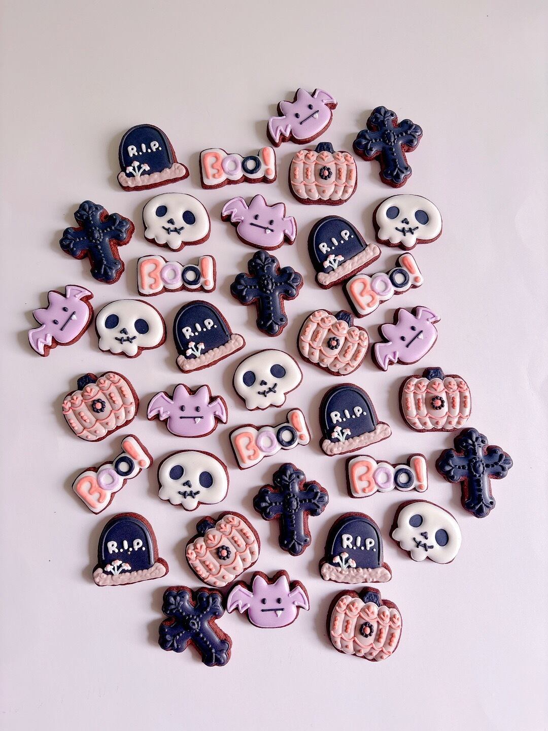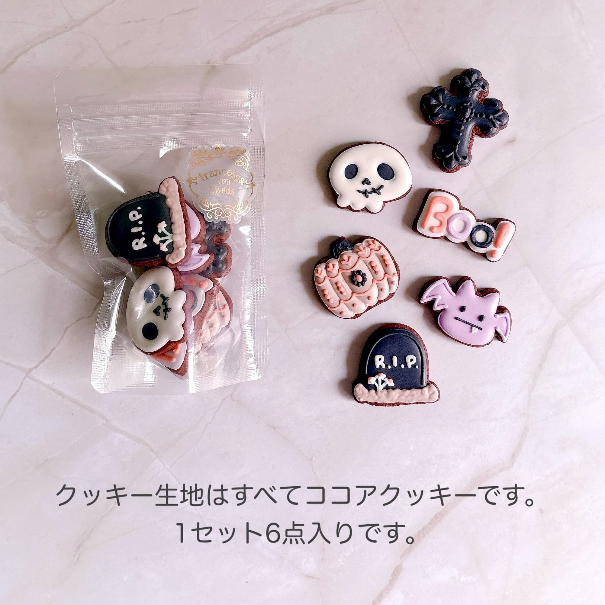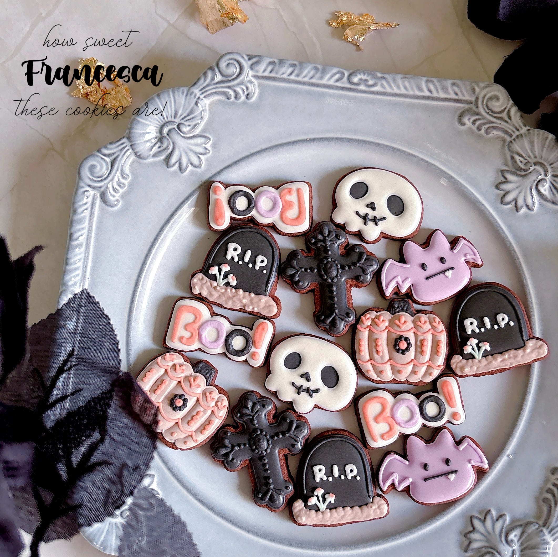 ハロウィンらしいモチーフをたくさん詰め込んだ、ゴシックでかわいいアイシングクッキー。