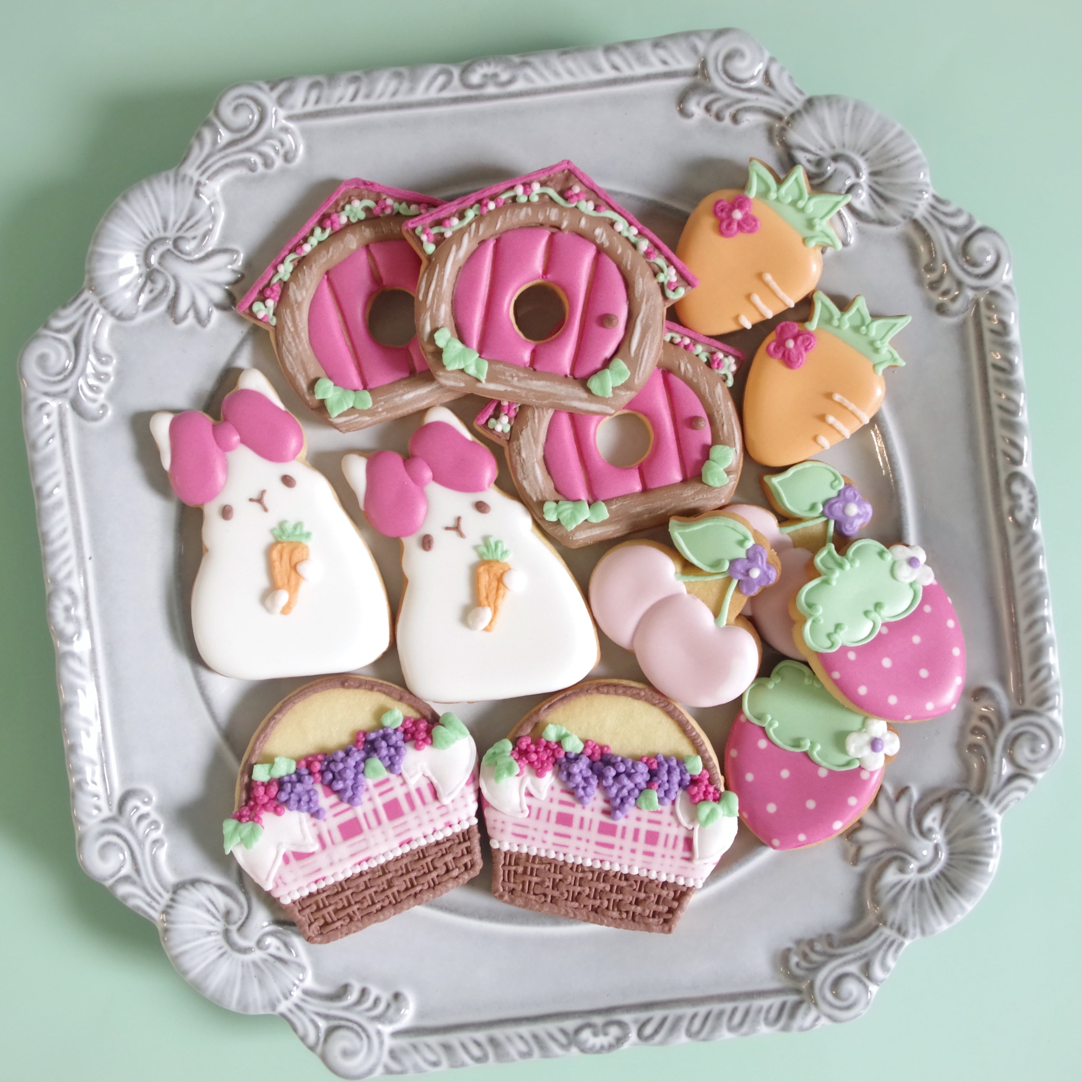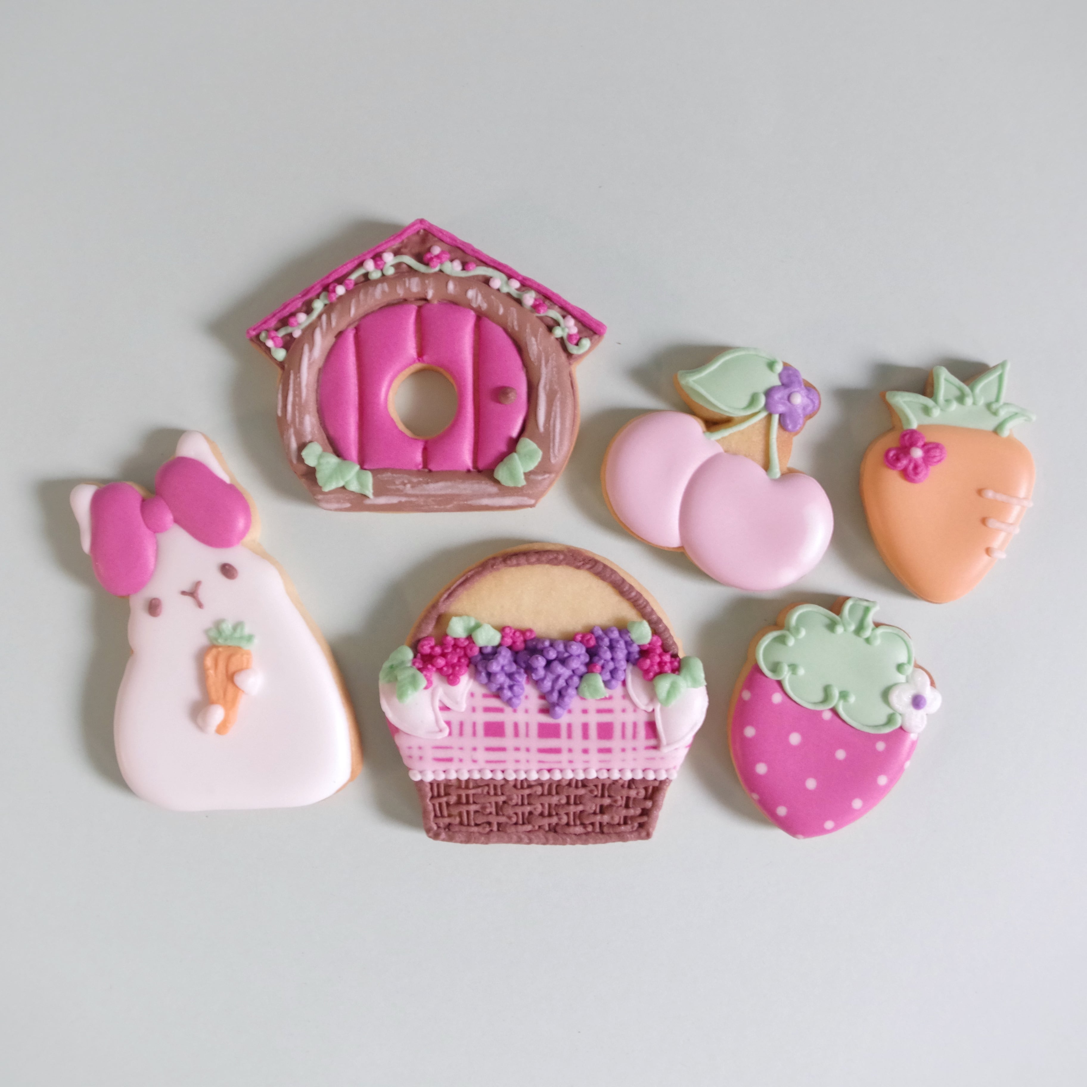 フルーツと春が大好きなうさぎをモチーフにしたアイシングクッキーセット。