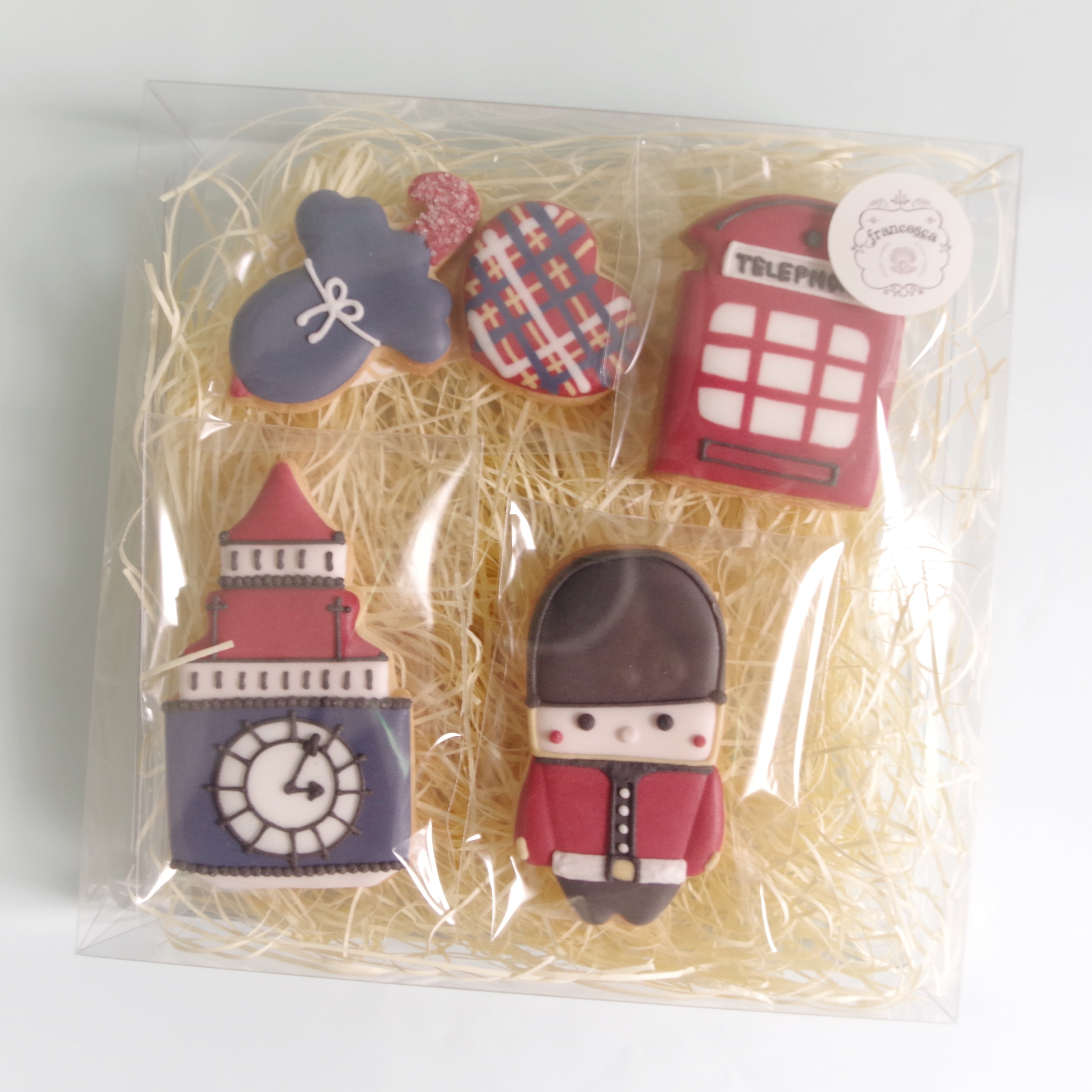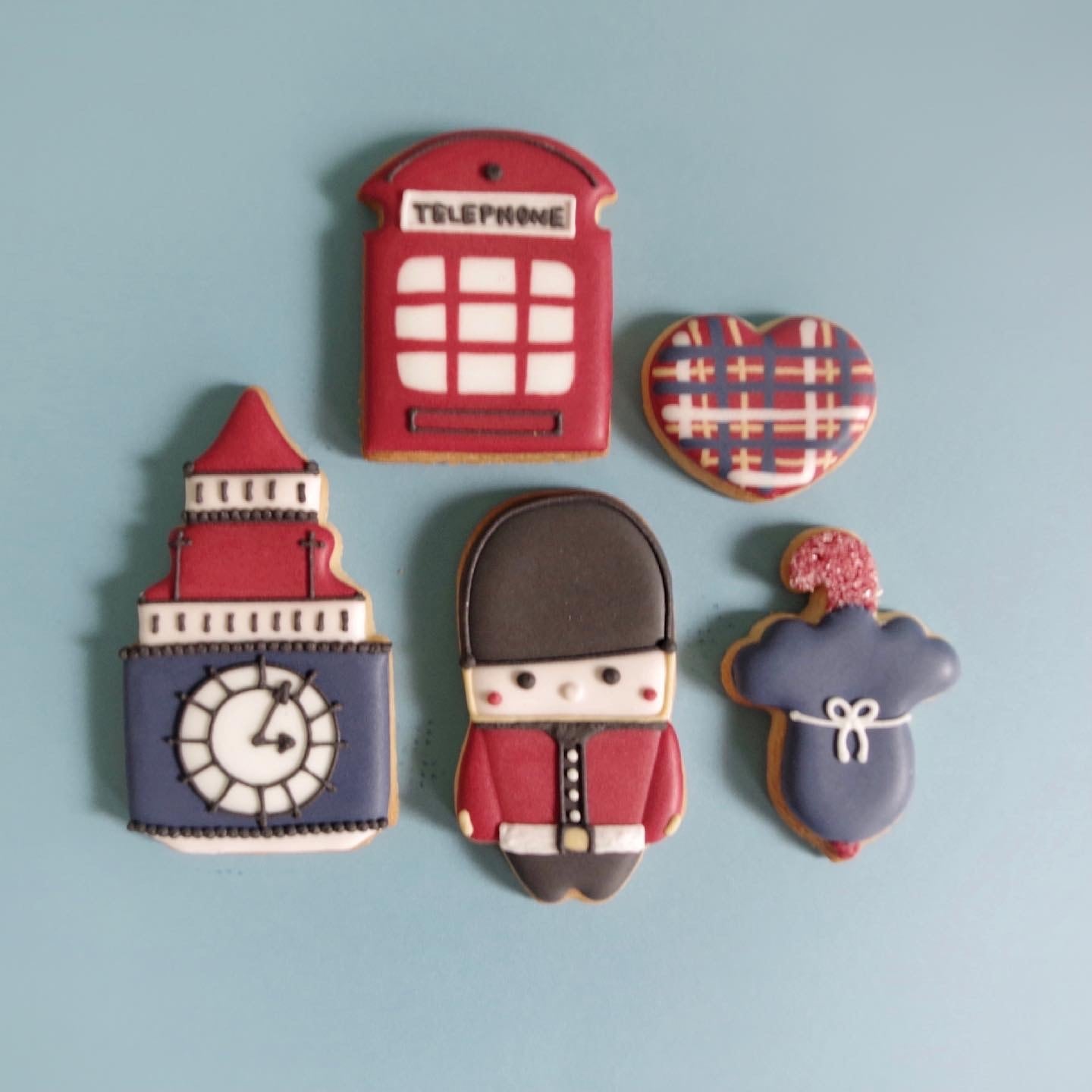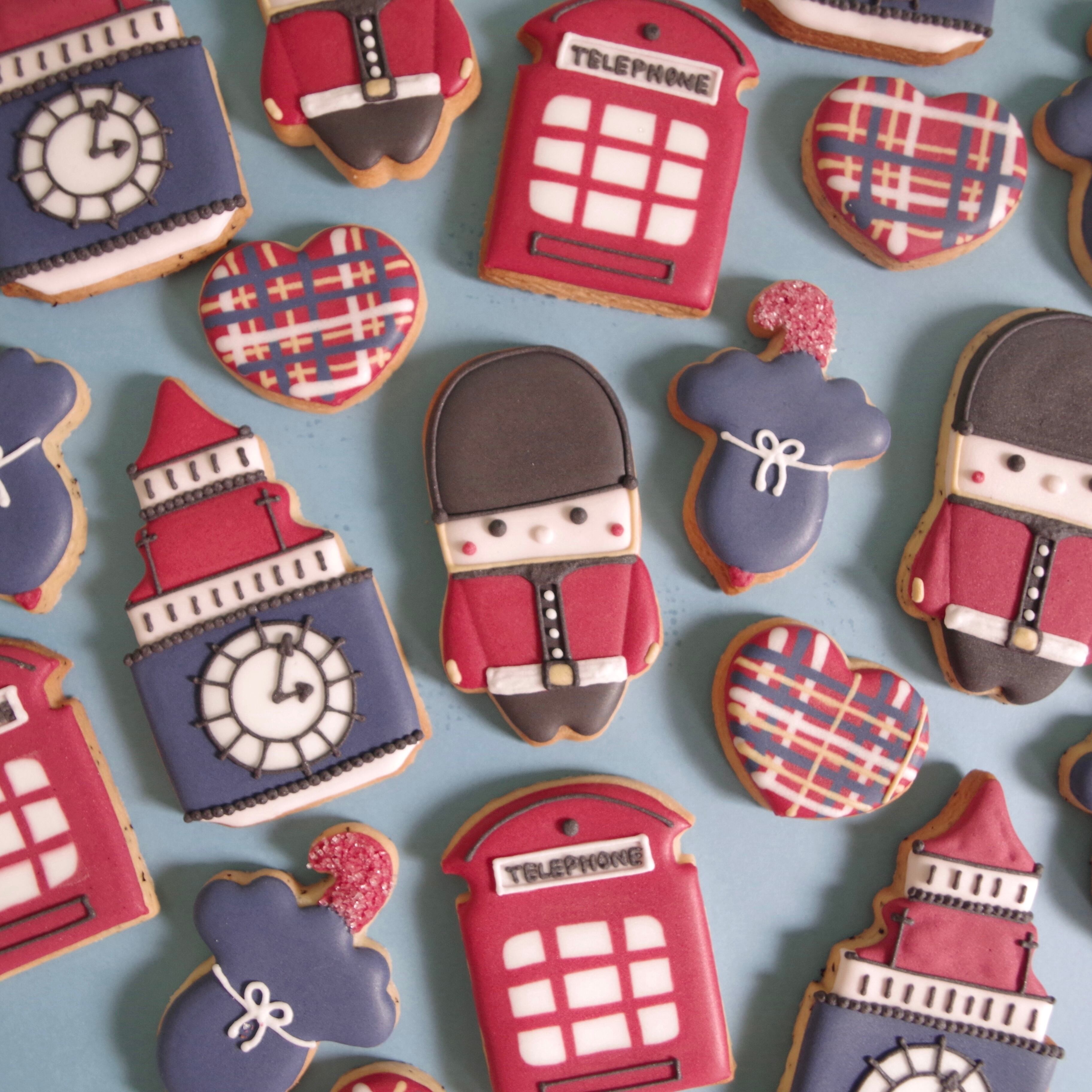ロンドンのビッグベン、近衛兵や電話ボックスをイメージしたアイシングクッキーセットです。