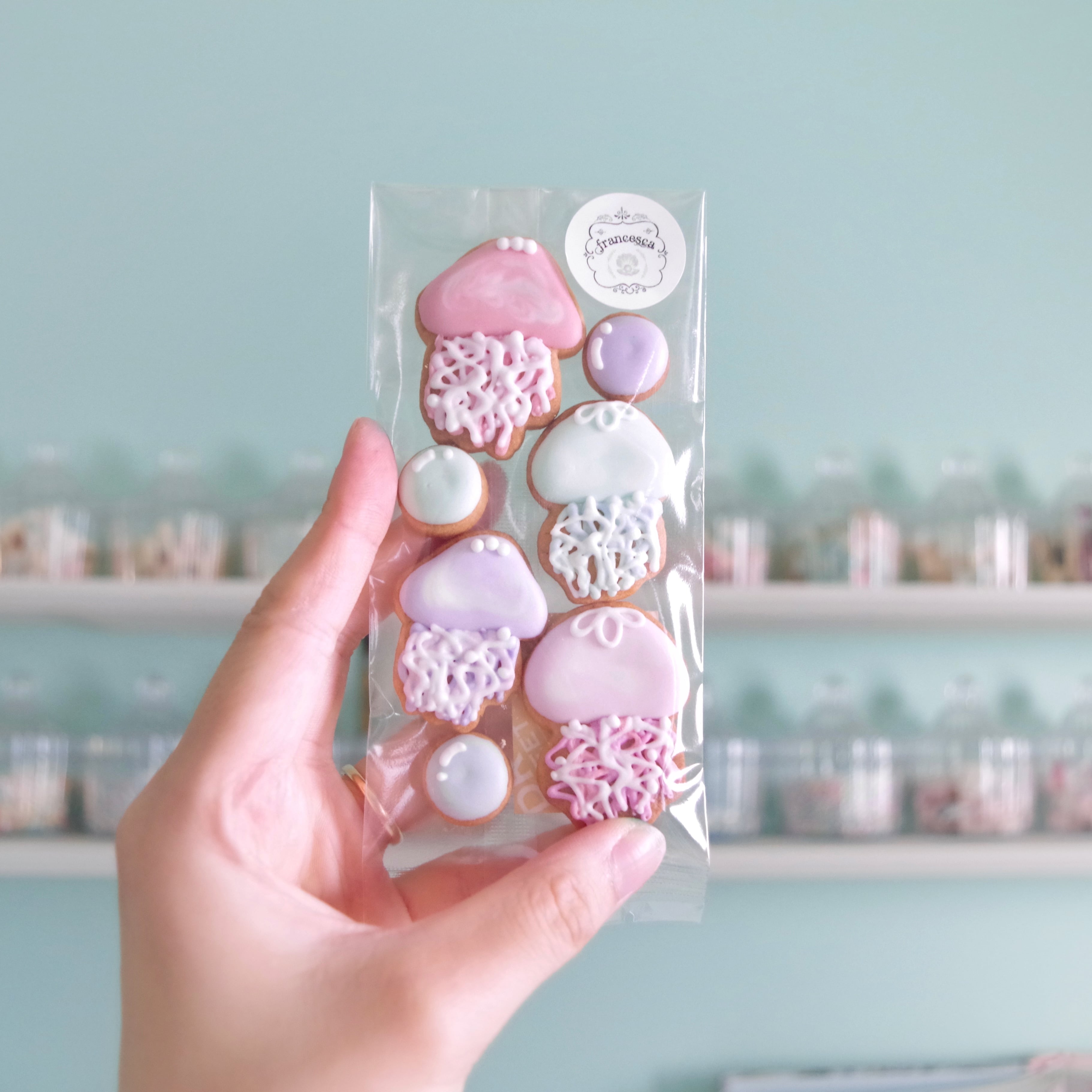 ぷっくりとしたフォルムがキュートで、涼しげなパステルカラーが夏にぴったりなクラゲのアイシングクッキーセットです。