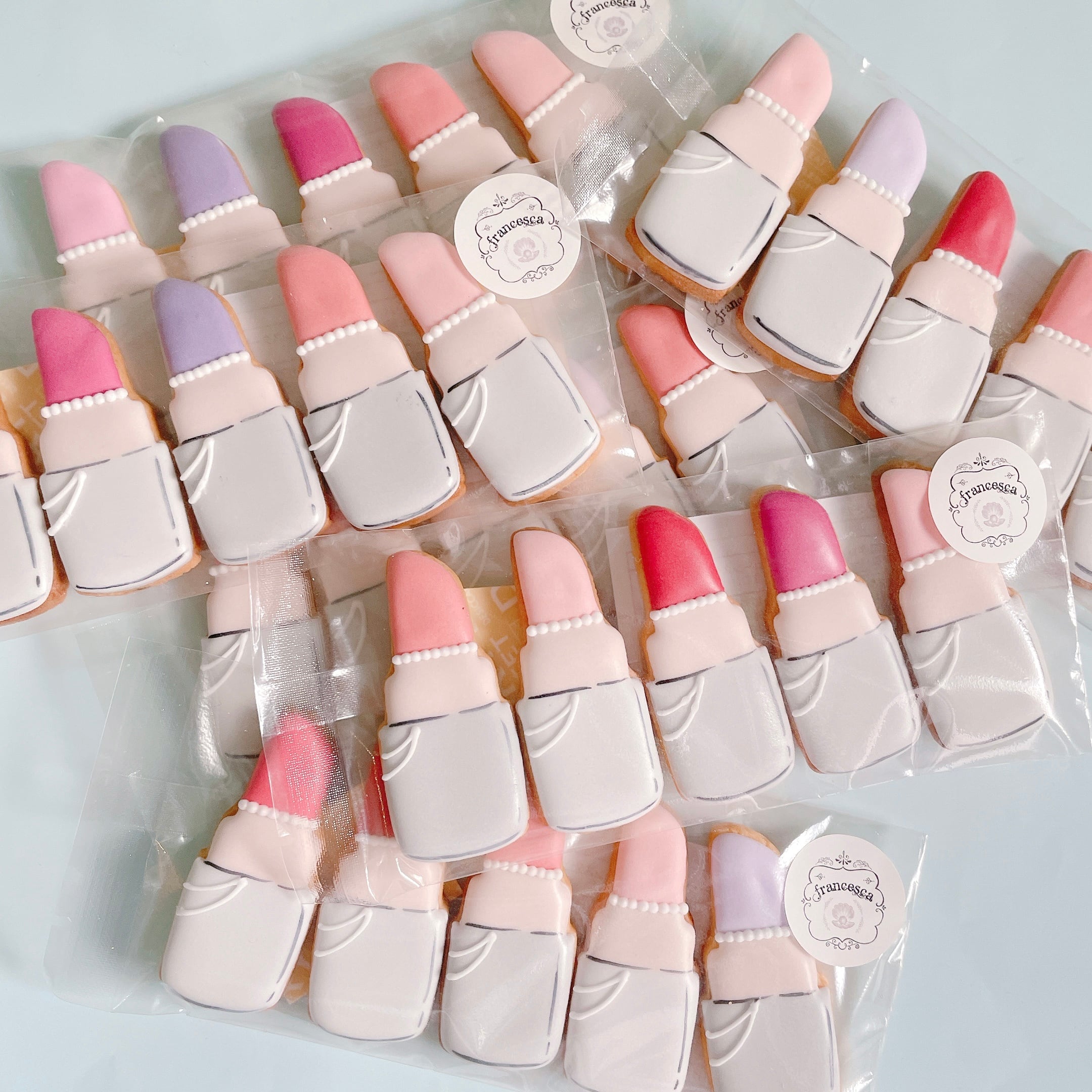色とりどりなデザインがかわいい、リップスティックをイメージしたアイシングクッキーセットです。