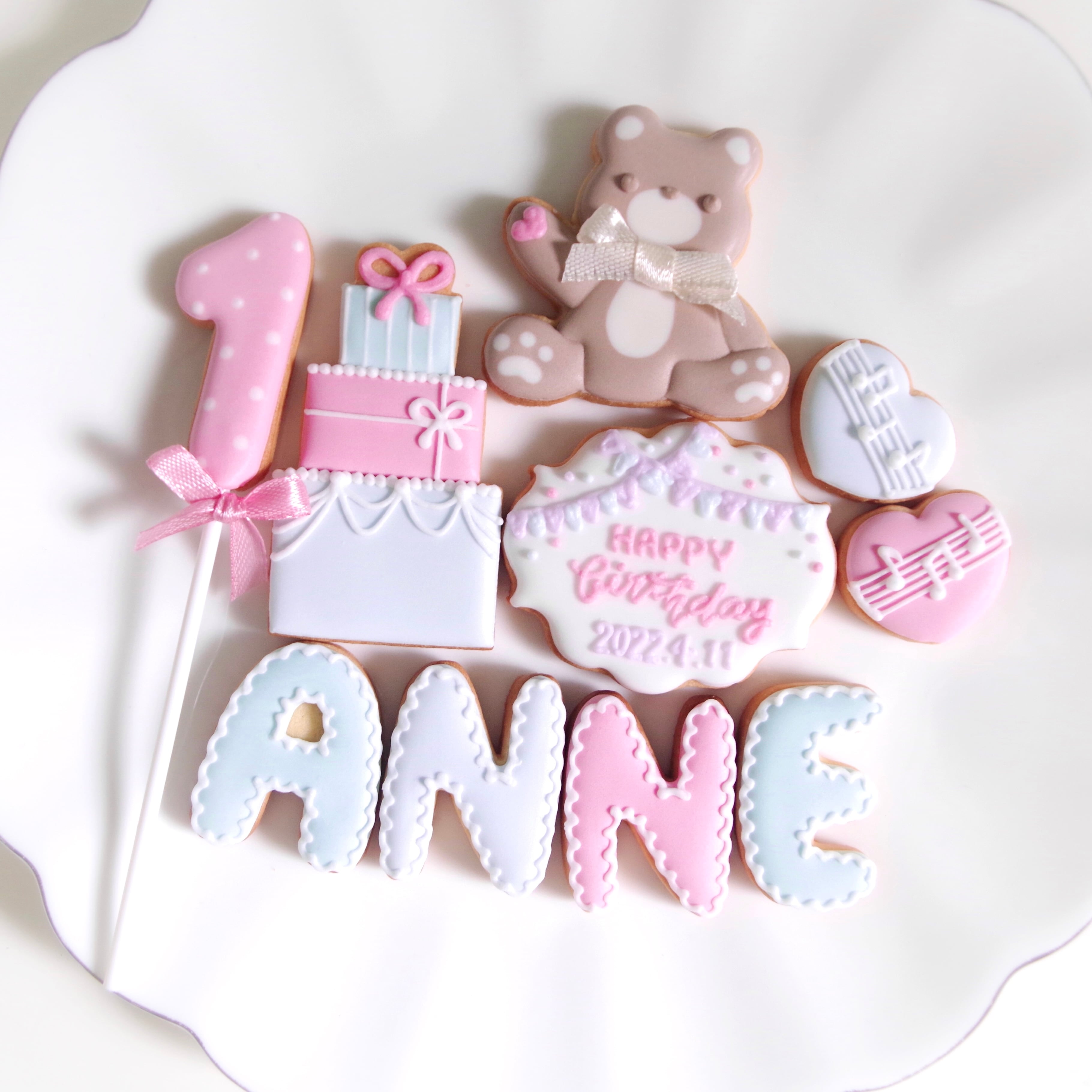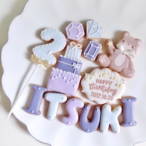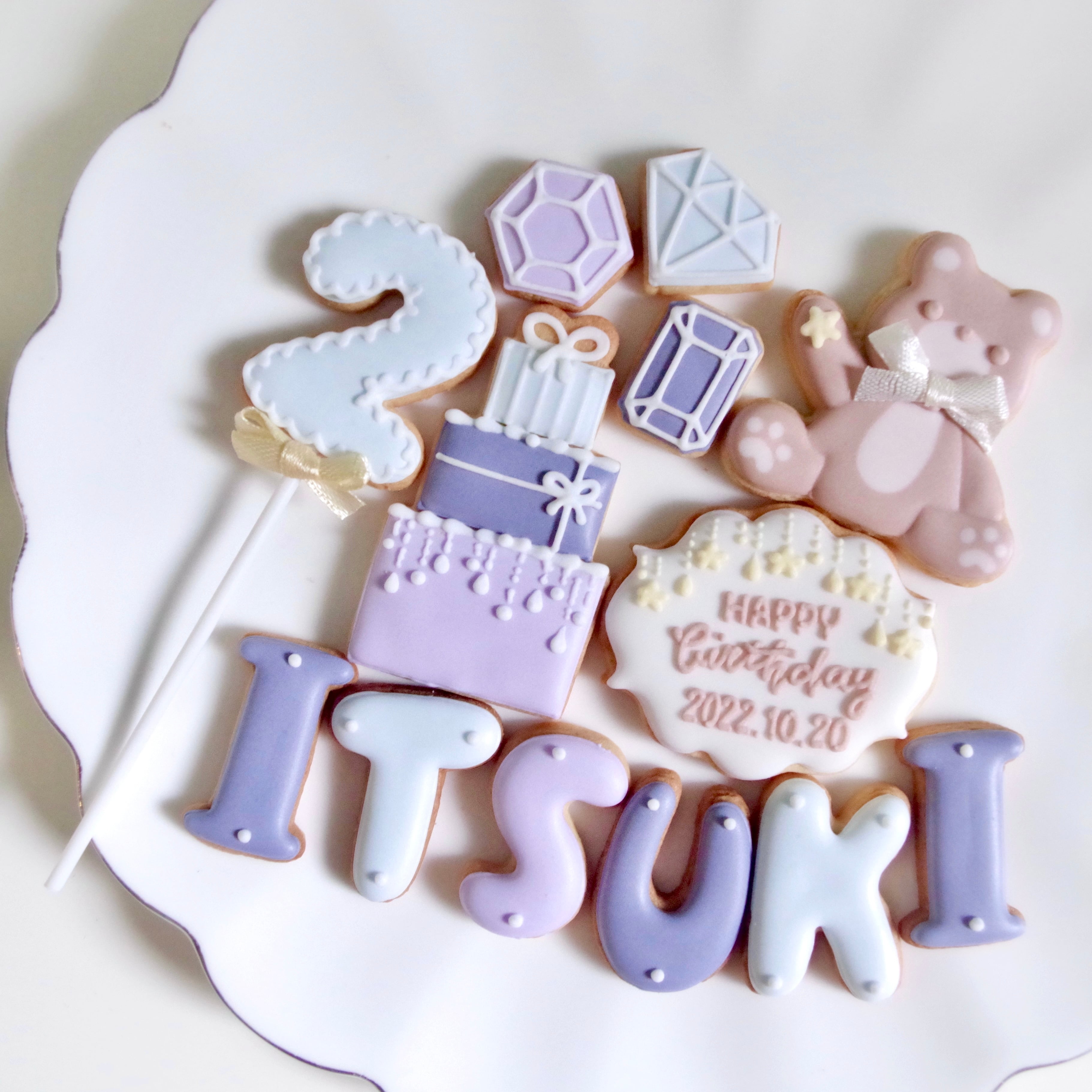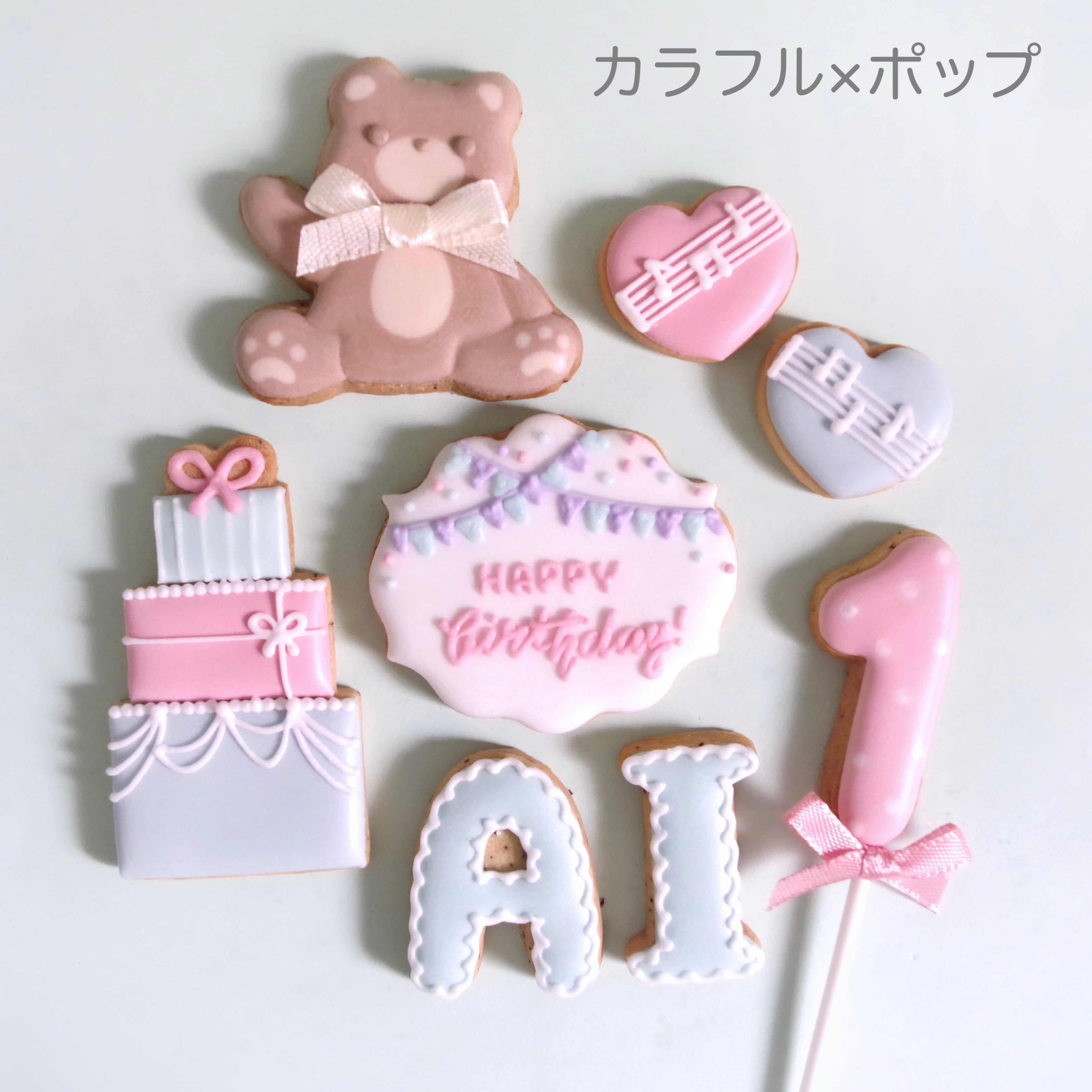 ポップでカラフルな色味が可愛い、お誕生日のお祝いにぴったりなバースデーアイシングクッキーセット。