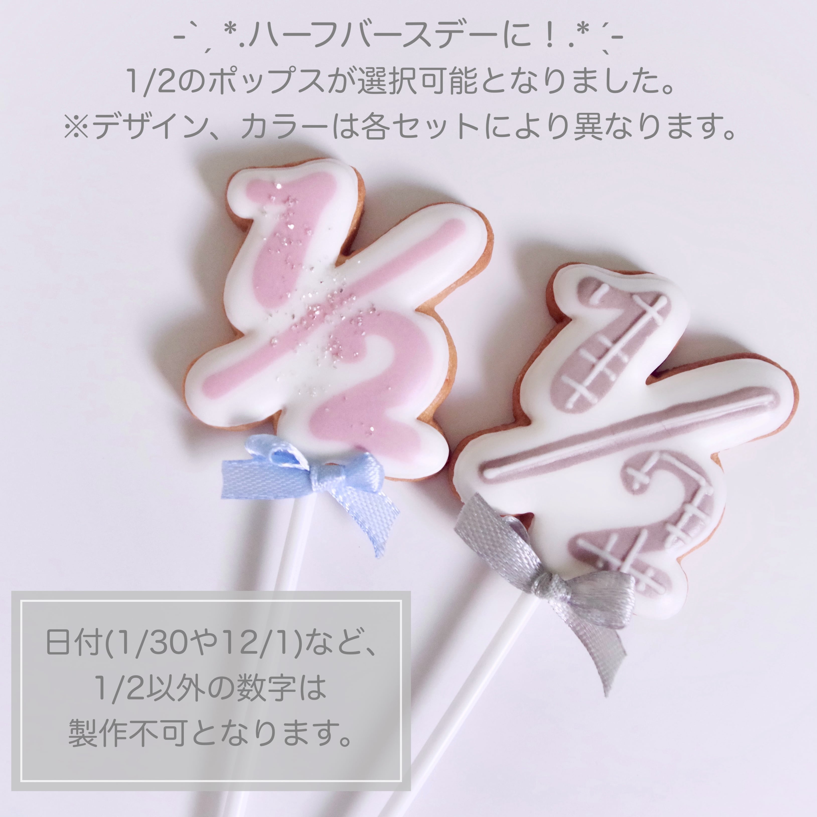 1/2はハーフバースデー用の数字となります。日付(1/30や12/1など)はご製作ができませんのでご注意ください。