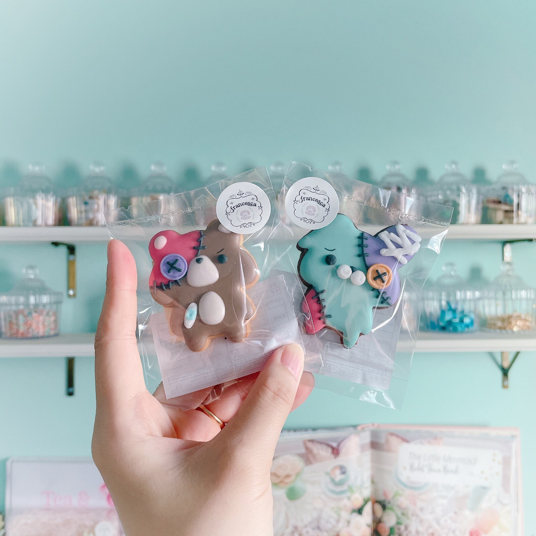 少し大きめのアイシングクッキーを1点ずつ個包装しています。