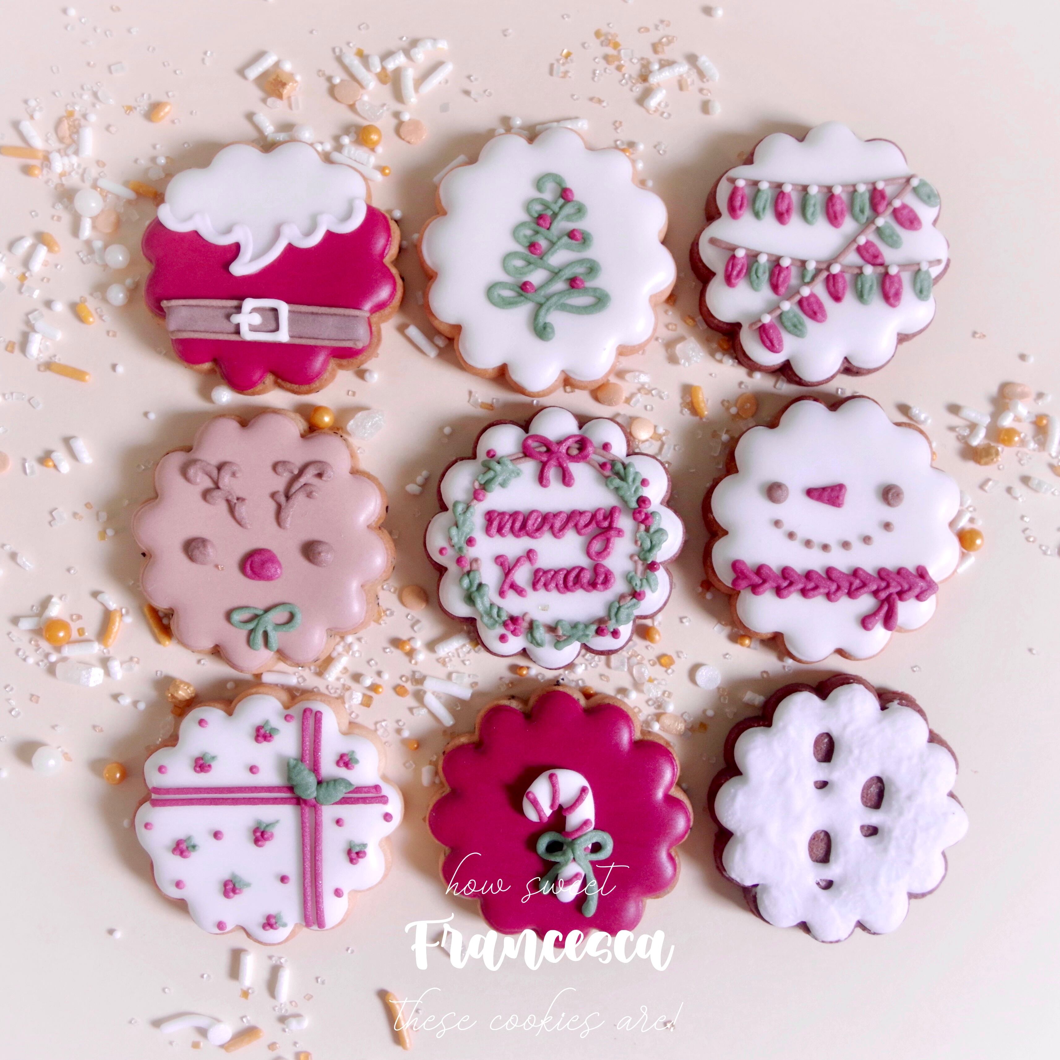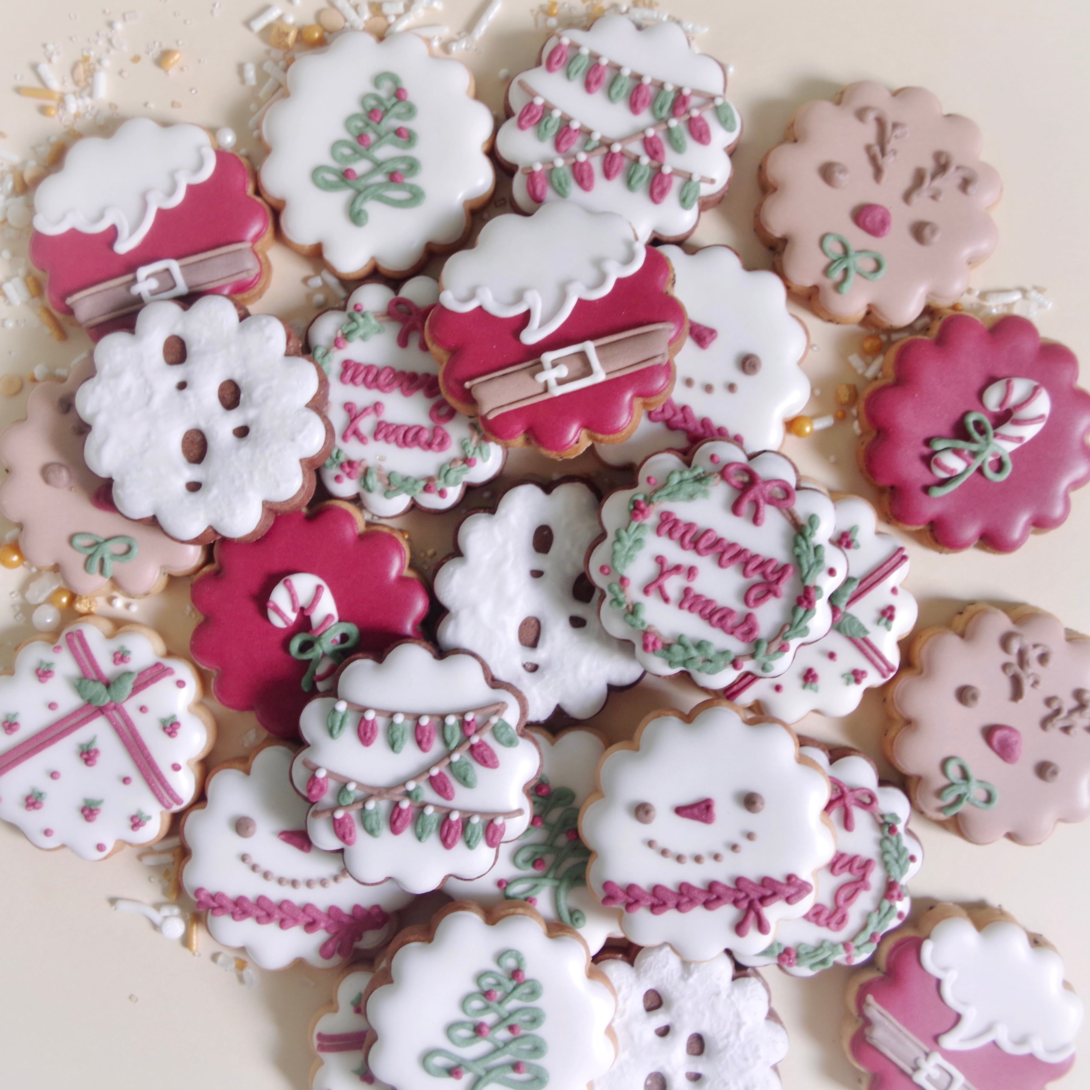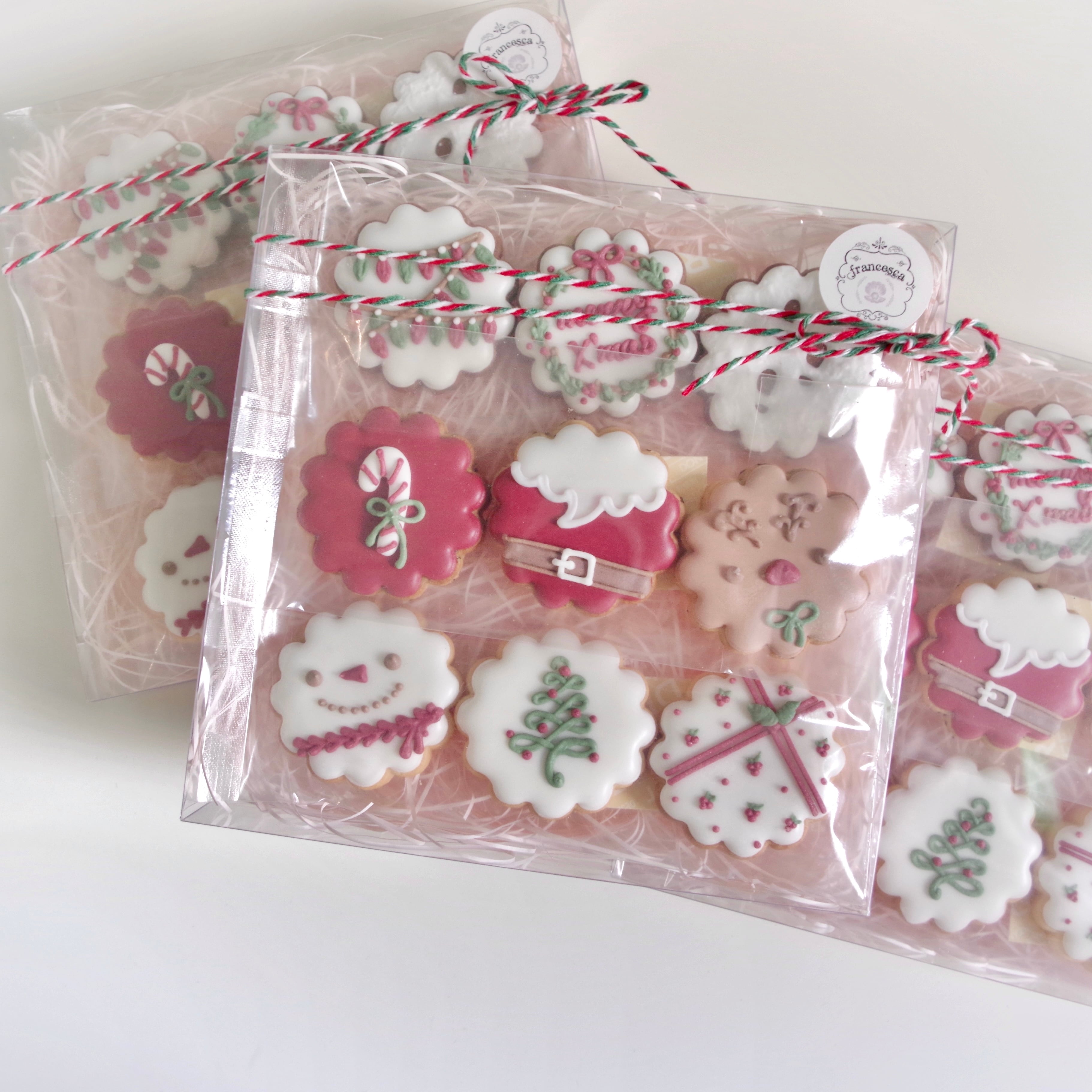 クリスマスツリーのオーナメントのようなバリエーションがかわいいアイシングクッキーセット。