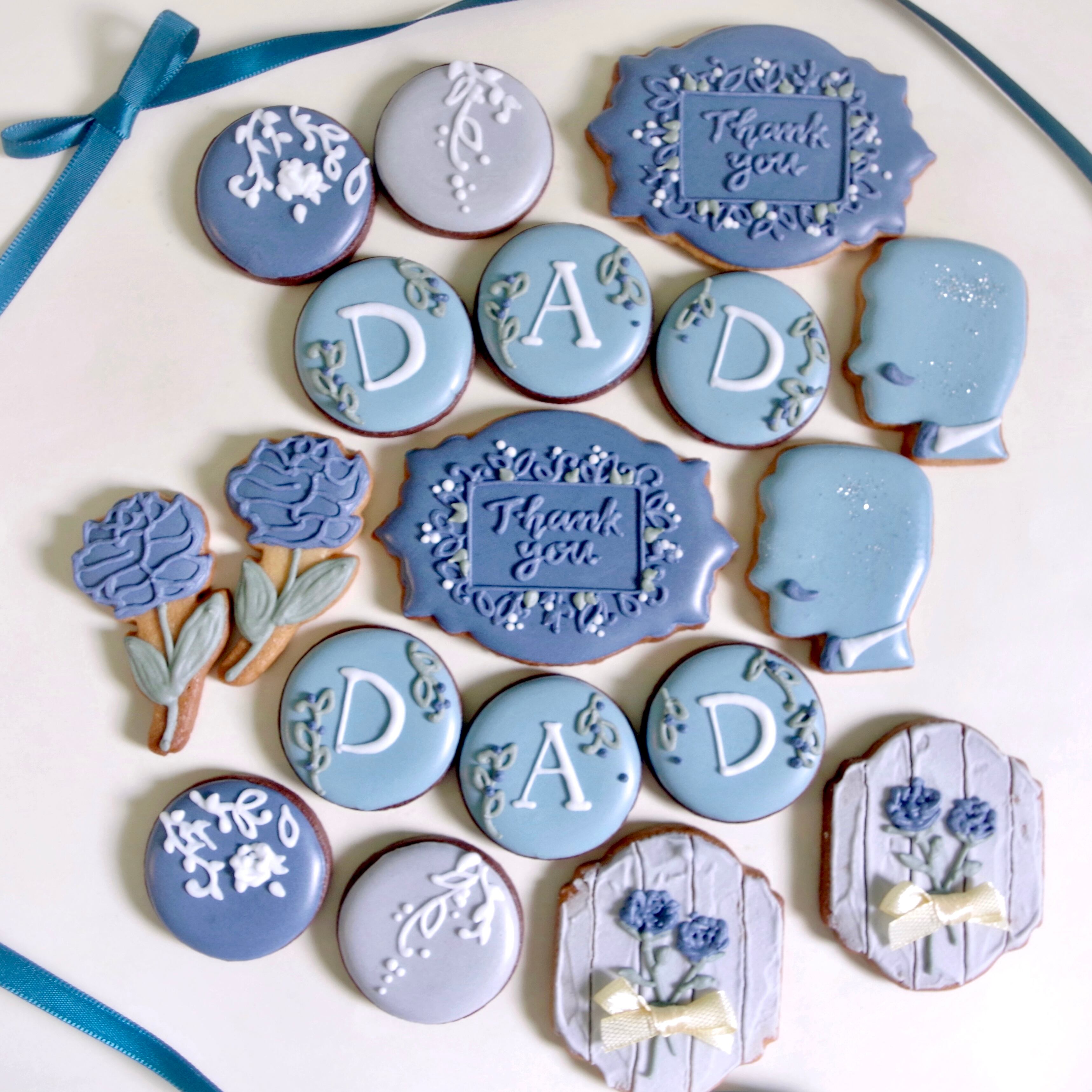 ネイビー×イエローのシックでクラシカルなデザインが目を引く、2023年の父の日アイシングクッキーセットです。