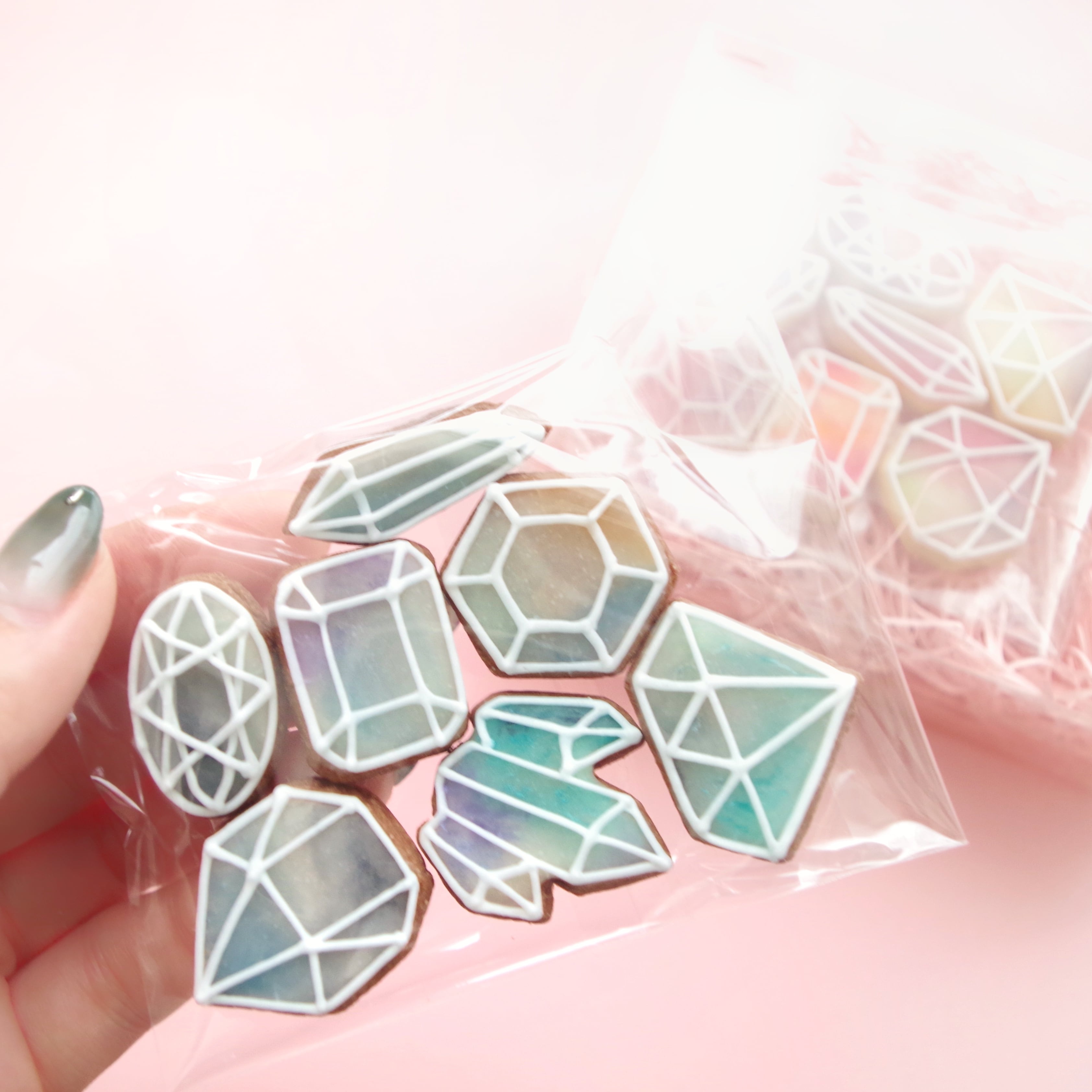本物の鉱石のような透明感と色使いのミニサイズアイシングクッキー。