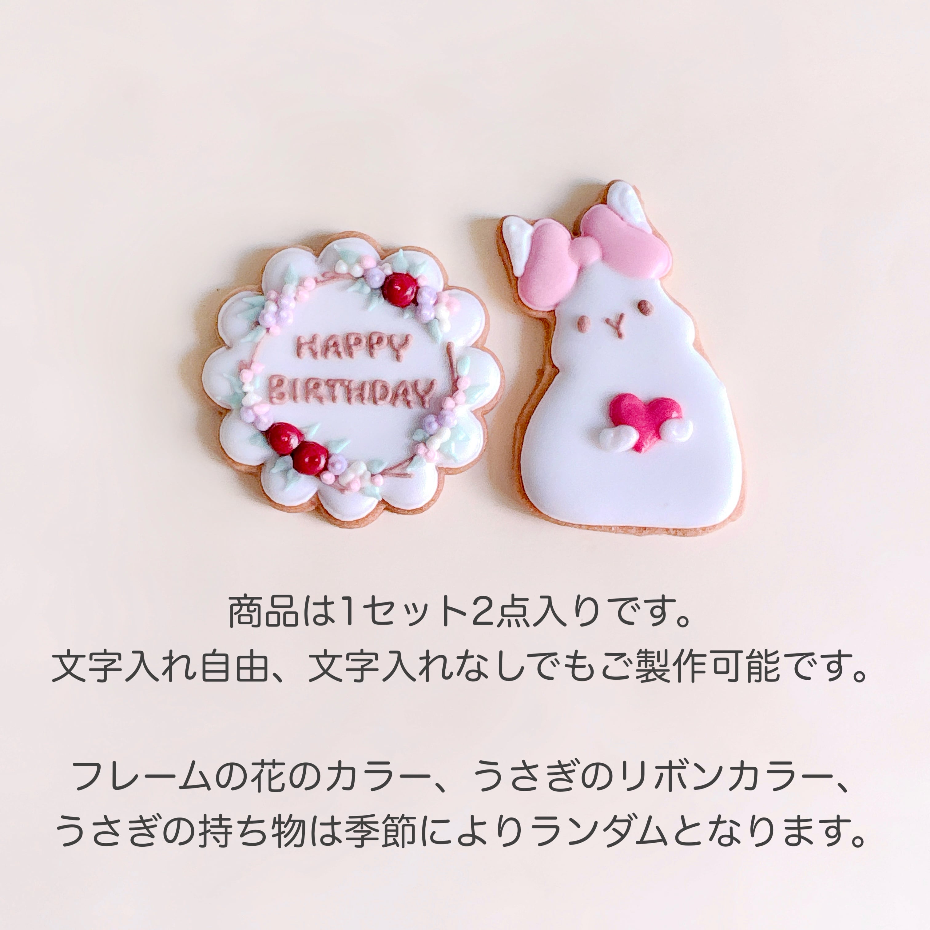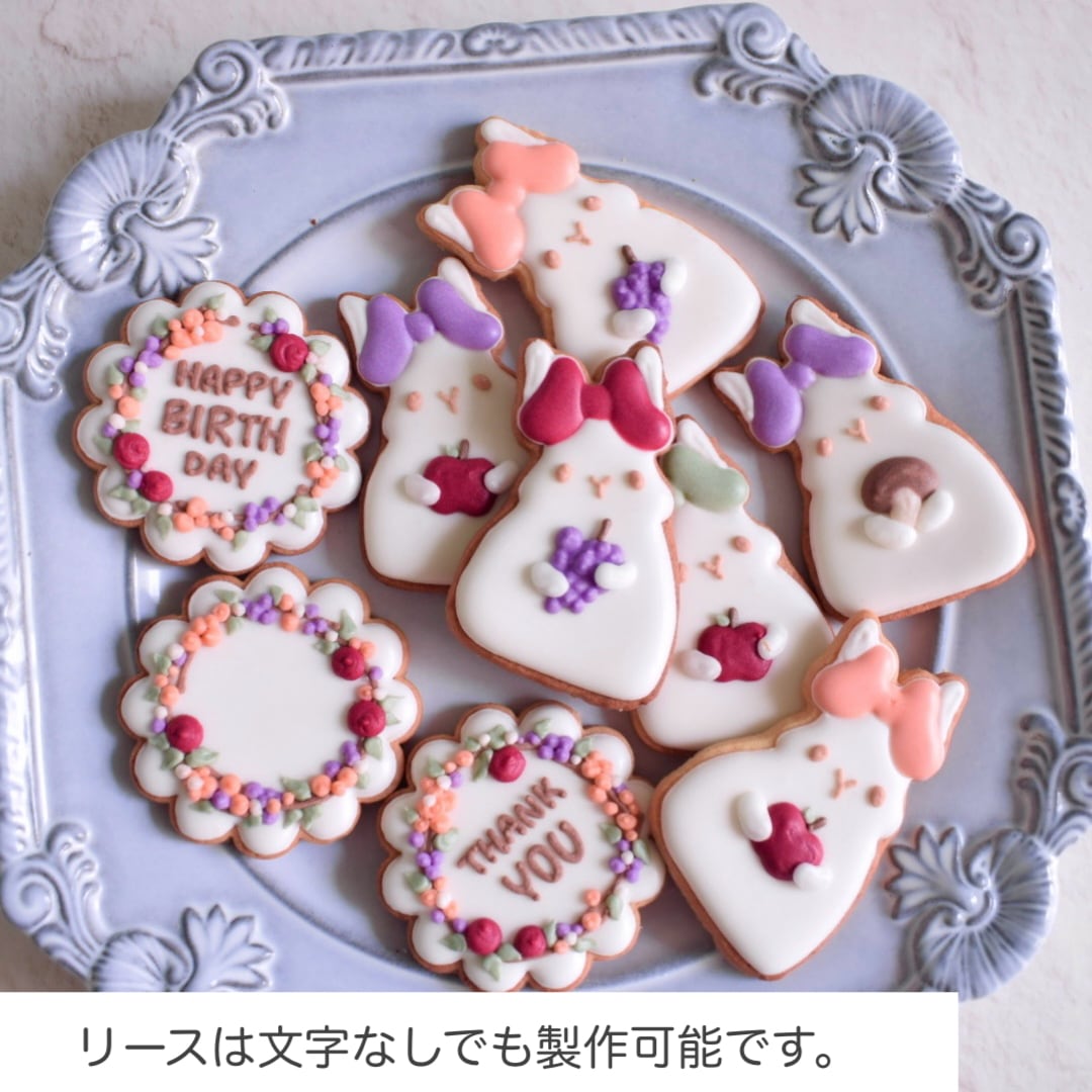 お好きな文字入れができる、リボンうさぎ1点とリースのアイシングクッキー1点が入ったギフトセットです。