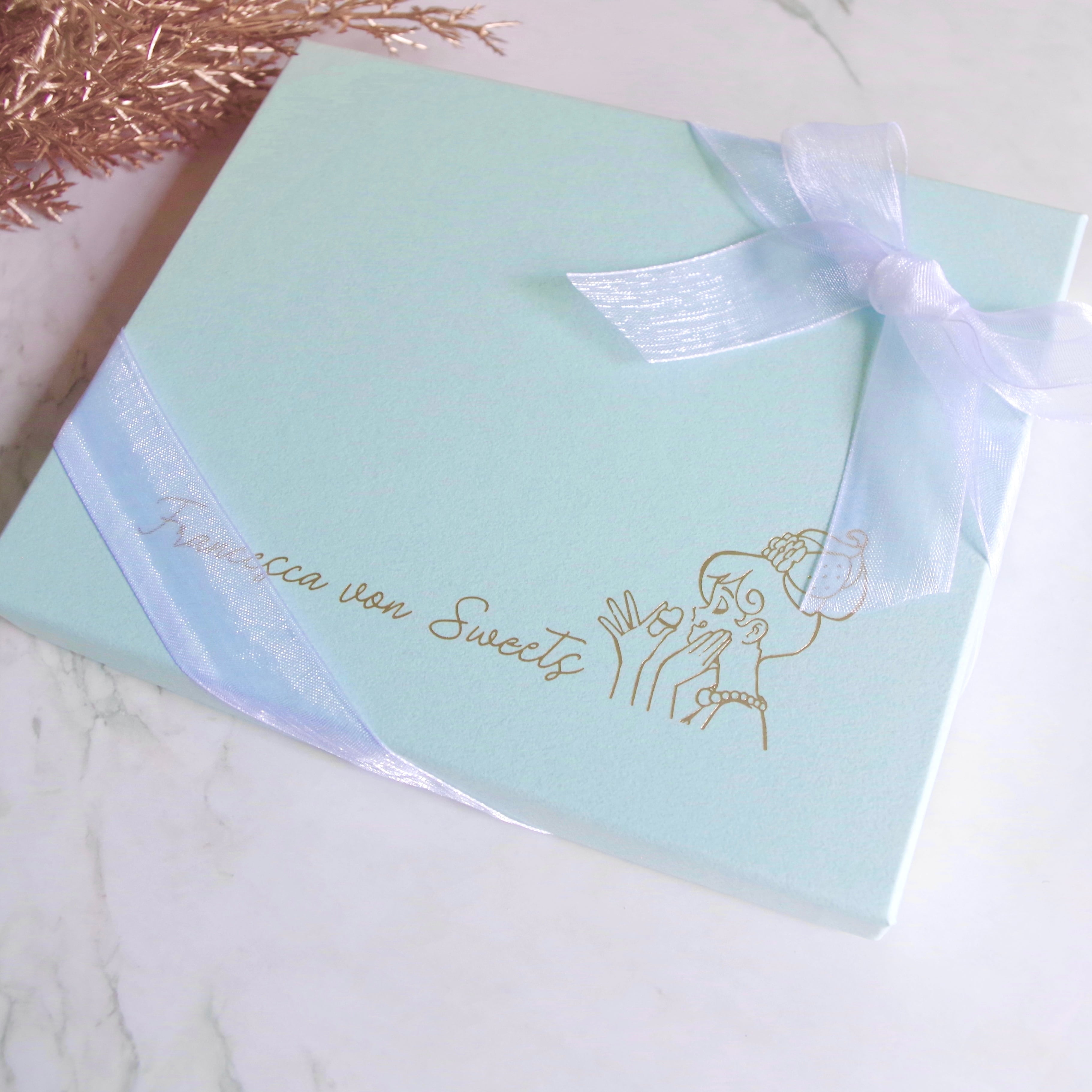 Francesca von Sweets 3周年を記念した、イラストレーター やべさわこ先生描き下ろしのイラストが入ったオリジナルギフトボックスに詰めてお届けいたします。