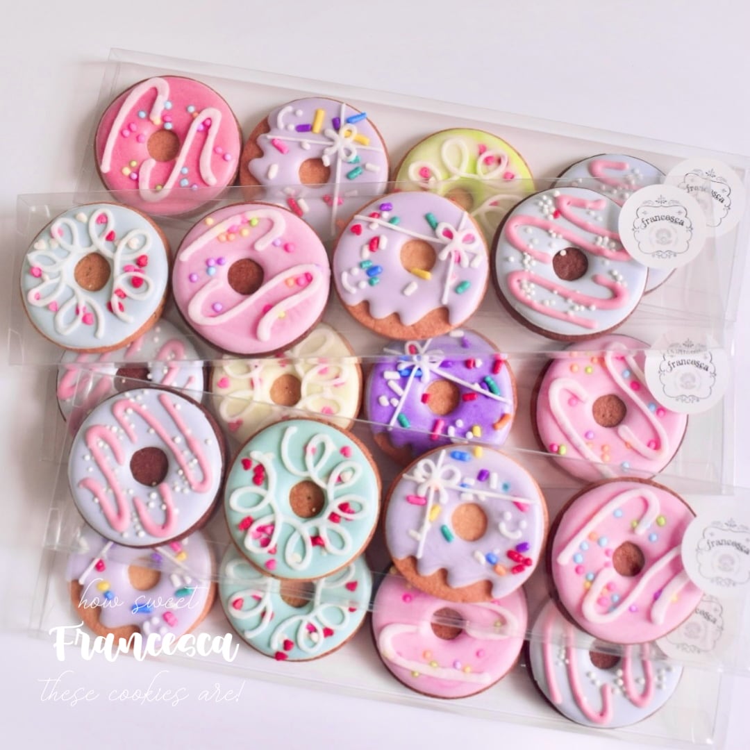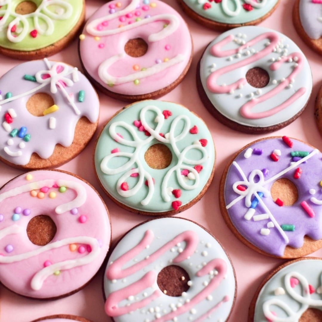 カラフルでポップなデザインが可愛い、ミニサイズのドーナツ風アイシングクッキー。