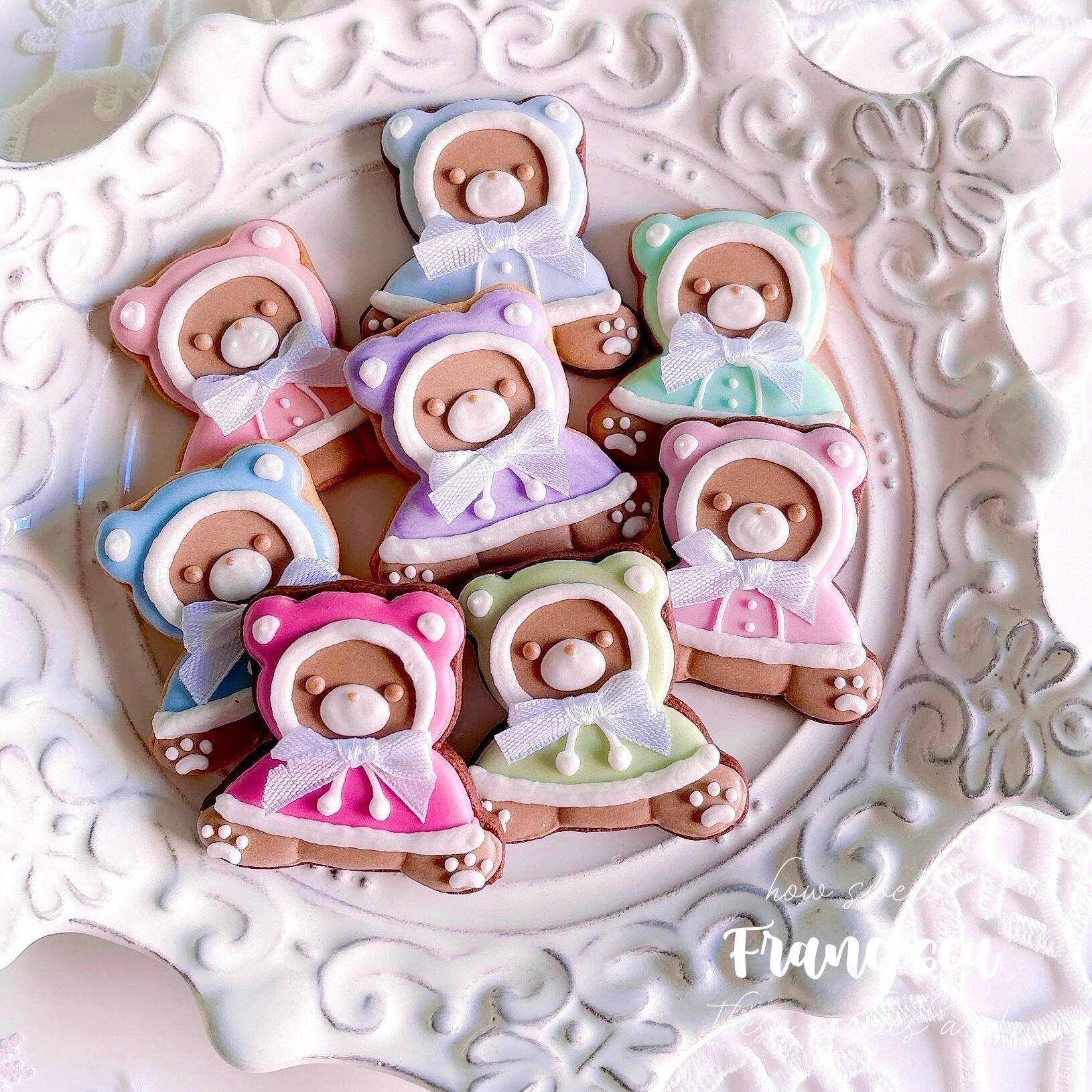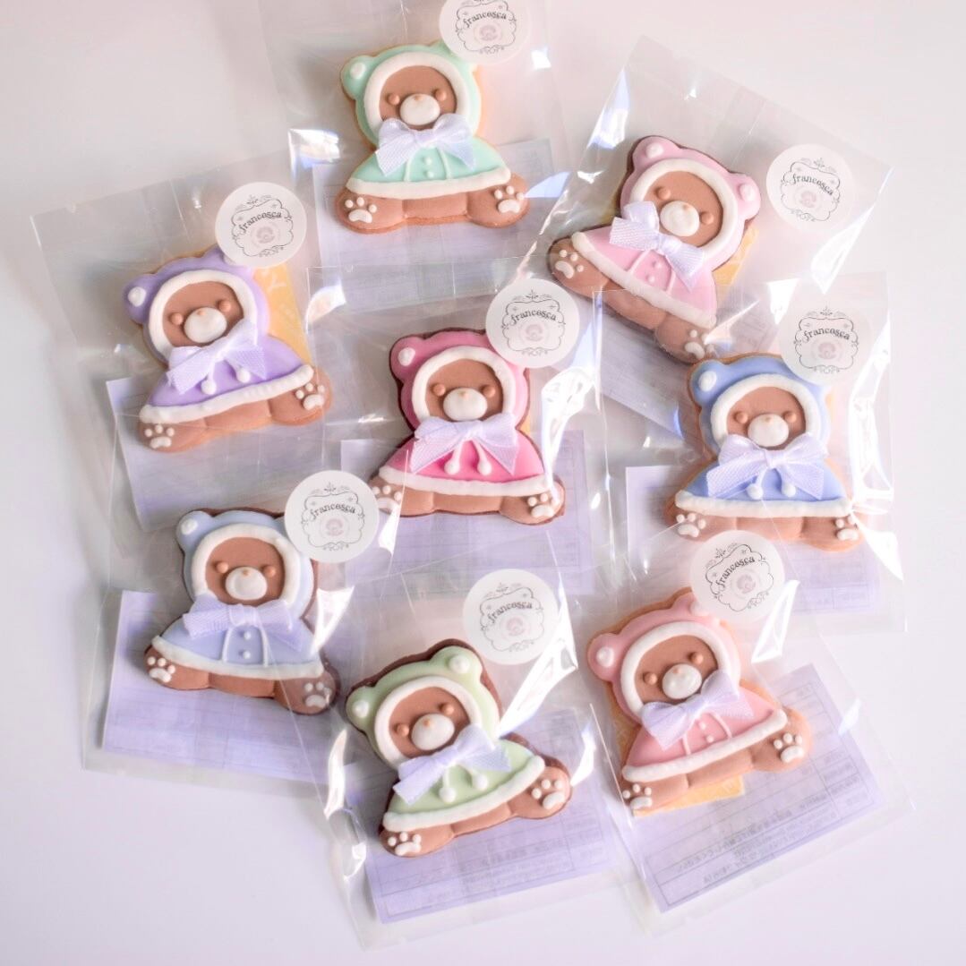 ケープ姿がもこもこ可愛い冬限定のテディベアのアイシングクッキー。